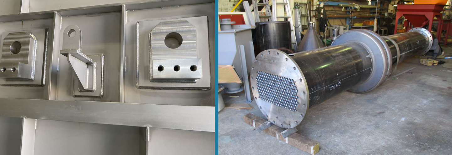主に鉄やステンレス等の金属板を加工し容器などを作る「製缶」、金属板を加工する「板金」 生産設備に必要不可欠な機械や配管等の